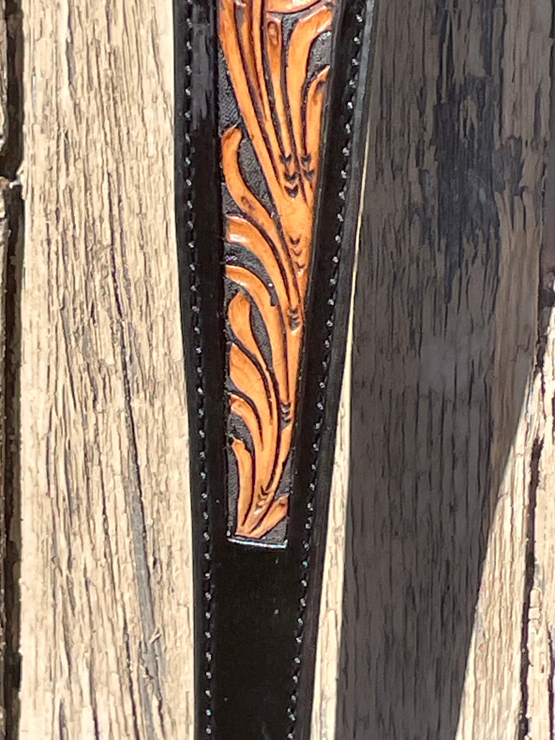 Beautiful hand carved rifle sling with a black background and natural flowers and foliage. Back is lined with a black suede to avoid slipping but still be quick off the shoulder. Cobra design with wide upper strap makes for comfortable carrying all day long. Hardware-free mounting means you won’t accidentally give yourself away.